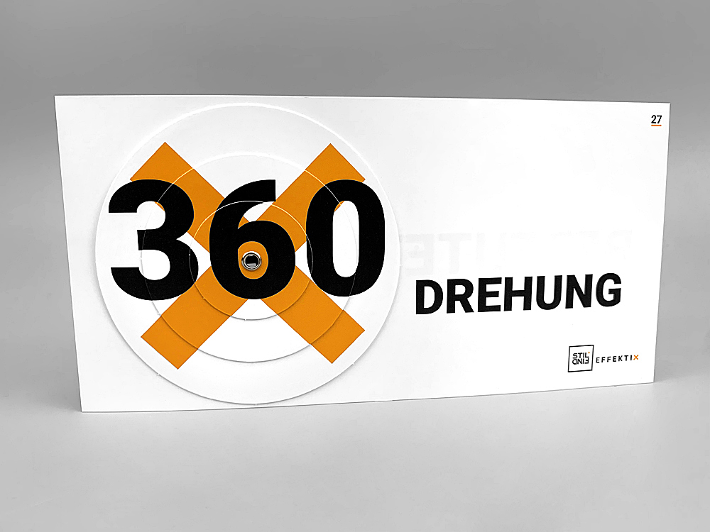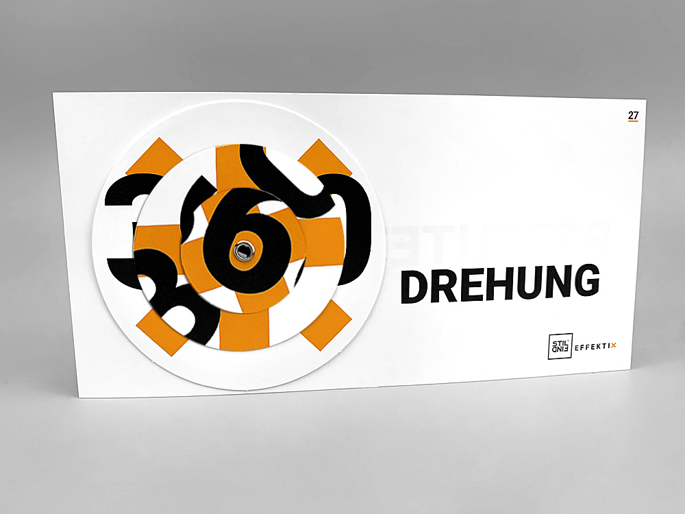 Die runde Drehringkarte von EFFEKTIX ist mehr als nur eine einfache Karte. Sie ist ein interaktives Werkzeug, das deine Botschaft auf eine spannende und einzigartige Weise präsentiert. Mit drei beweglichen Ringen auf der Kartenfront bietet sie ein dynamisches und spielerisches Element, das deine Zielgruppe sofort in den Bann zieht.