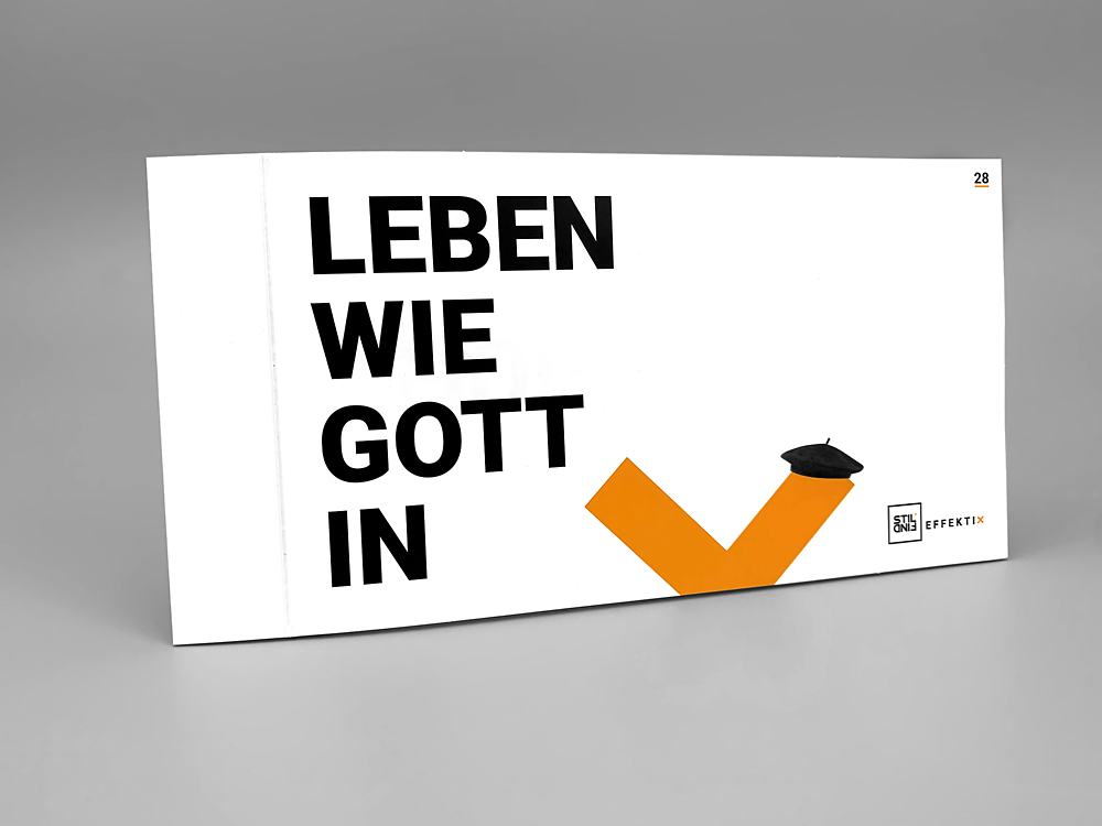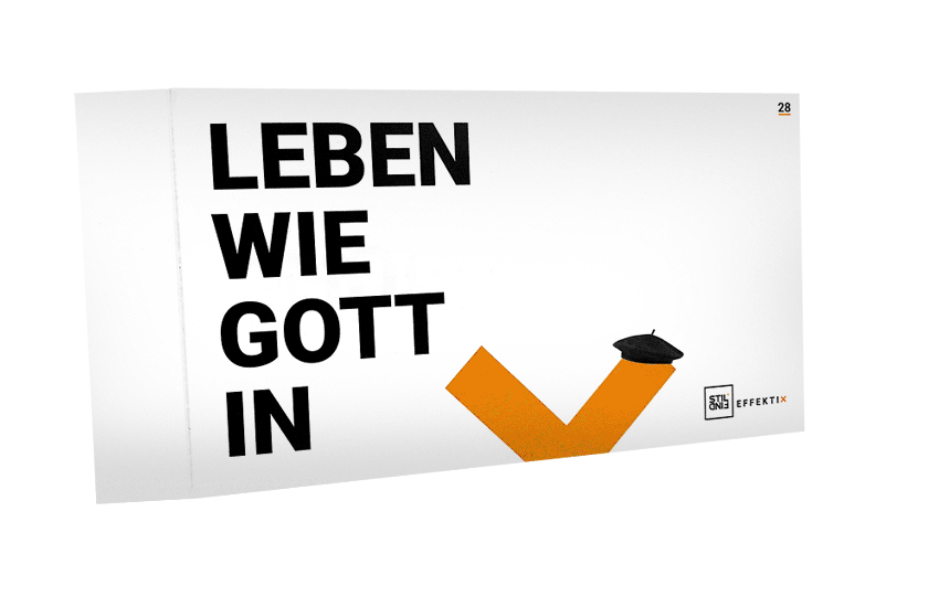 • Erster Basis-Datencheck (Überprüfung von Größe, Stand, Farbmodus, Beschnitt und Bildqualität) ist im Preis inklusive. Falls weitere Datenarbeiten und -checks nötig sind, werden diese nach Aufwand berechnet.