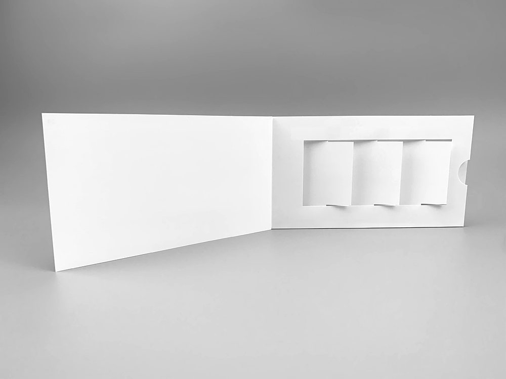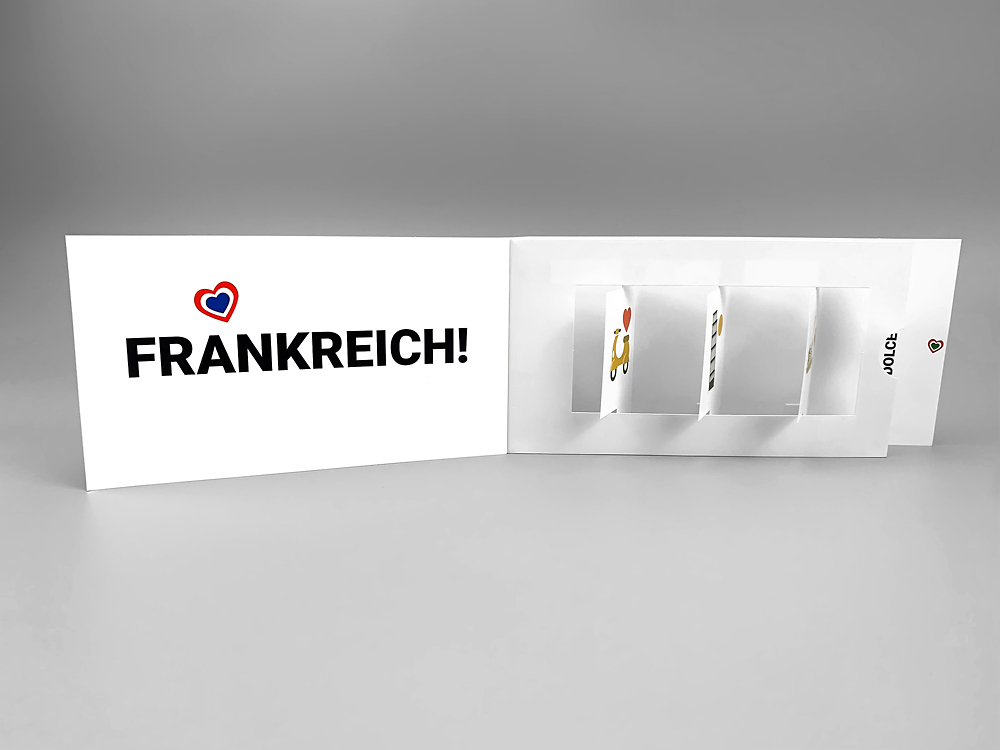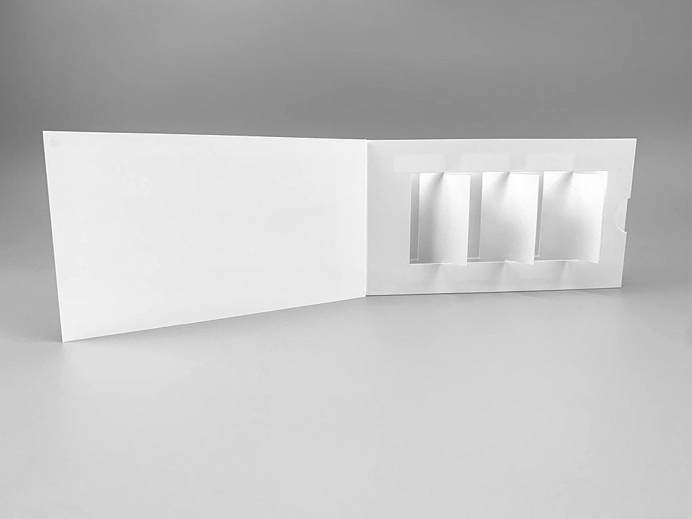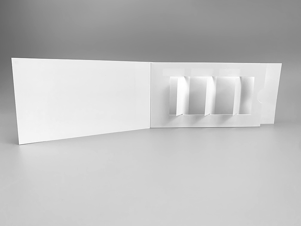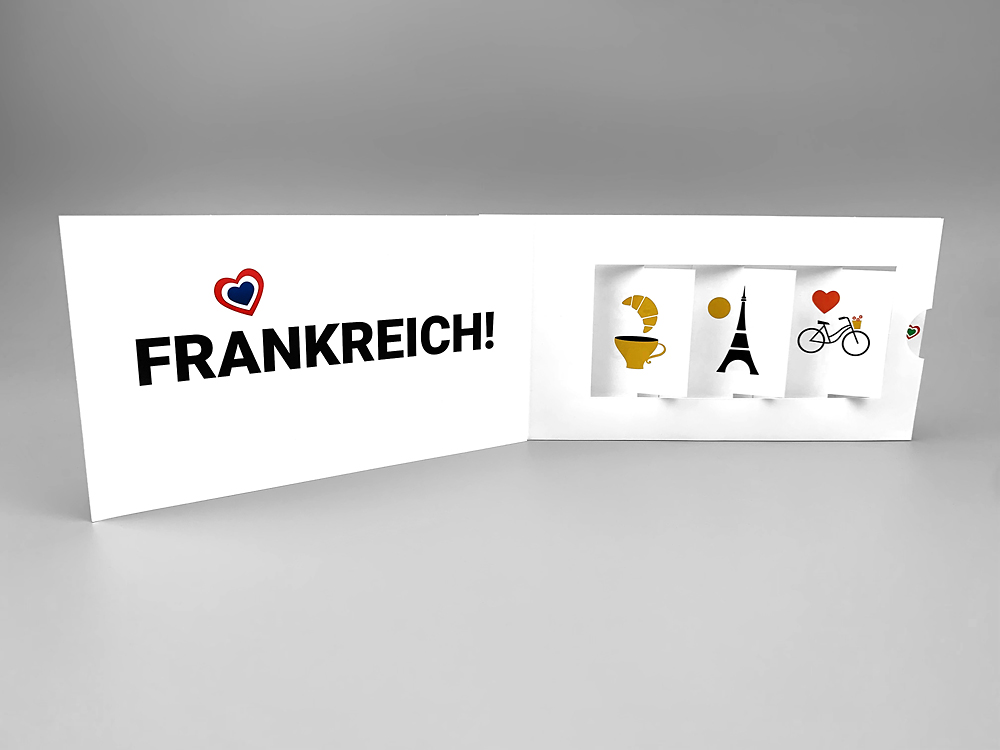 Nutze den Reiz beweglicher Elemente mit unserer Jalousiekarte mit Klappe! Diese Karte bietet eine aufregende Überraschung, da sich beim Öffnen drei bewegliche Elemente um 180 Grad drehen und so ein Wechselmotiv offenbaren. Deine Botschaft bleibt hinter den Elementen verborgen und zieht beim Aufklappen die Aufmerksamkeit auf sich. Sobald die Lasche zurückgeschoben wird, kehren die Elemente in ihre Ausgangsposition zurück, bereit für die nächste Enthüllung. Dieser Mechanismus ist perfekt für Gewinnspiele oder alle Arten von Prämien, die du kommunizieren möchtest. Probiere es jetzt aus und beeindrucke deine Empfänger mit dieser interaktiven und einzigartigen Karte!